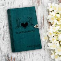 Introducing our custom engraved wood vow booklet, the perfect gift for couples and a necessary wedding essential. This versatile piece can also be used as a journal for travel, self-care, meditation, book of shadows, or grimoire. Personalize it with your choice of paper and stain. Complete with decorative rivets and screws, this unique item is both functional and stylish.