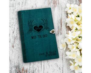 Wed Til Ded, Custom Engraved Wood Vow Book - Unique Wedding o...